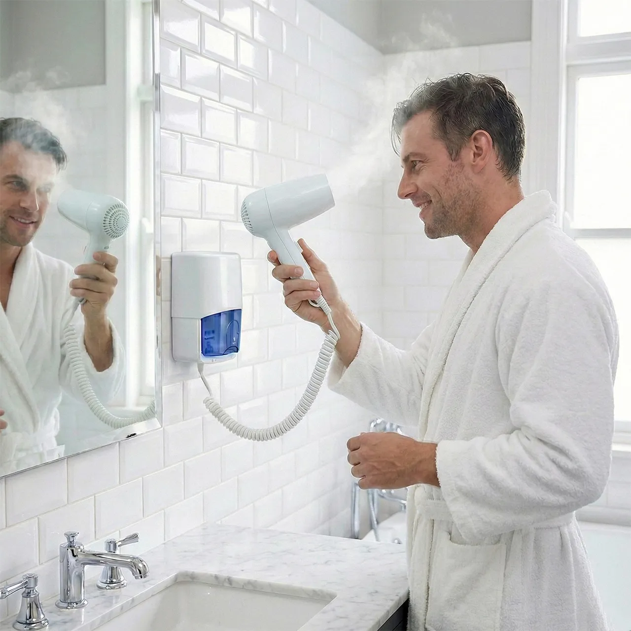 • Duvara monte olup, uzatılabilir kabloya sahiptir.