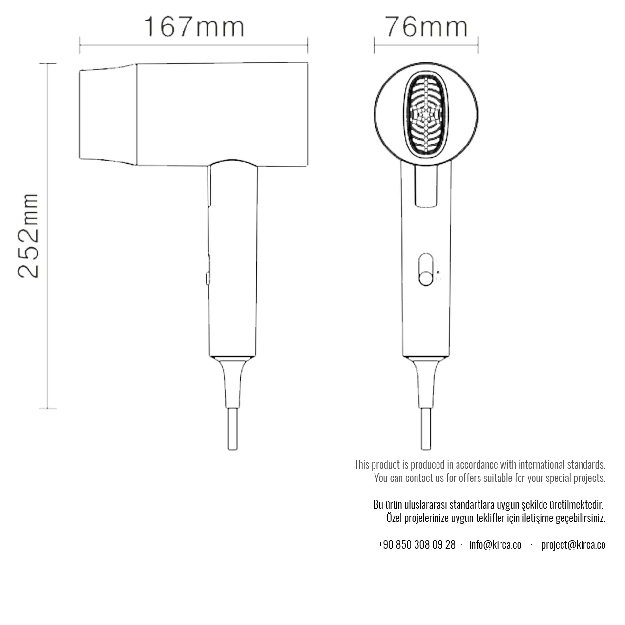 Xinda RCY180-22B Kablolu Saç Kurutma Makinesi TSE, CE ve IP24 sertifikalarına sahiptir. Dolayısıyla nemli özelikteki kapalı alanlarda güvenle kullanabilirsiniz.