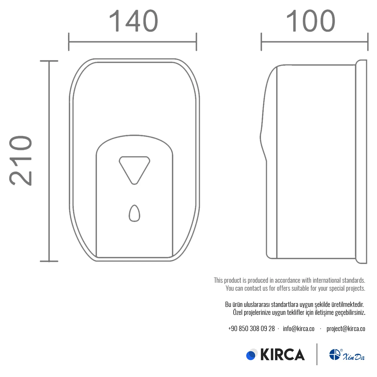 Xinda ZYQ120 Sensörlü Pilli Sıvı Sabun Dispenseri sıvı formlu el, yüz, vücut sabunu gibi temizlik sabunlarının dağıtımı kzıılötesi sensörü ile kolaylıkla yapması için tasarlanmıştır. Böylece müşterilerinize temassız şekilde kullanım kolaylığı sağlarsanız. Bununla birlikte sadece yetkili personelin anahtarla erişebileceğine emin olursunuz. Böylece hem ekonomi, hem de tam denetim sağlarsınız.