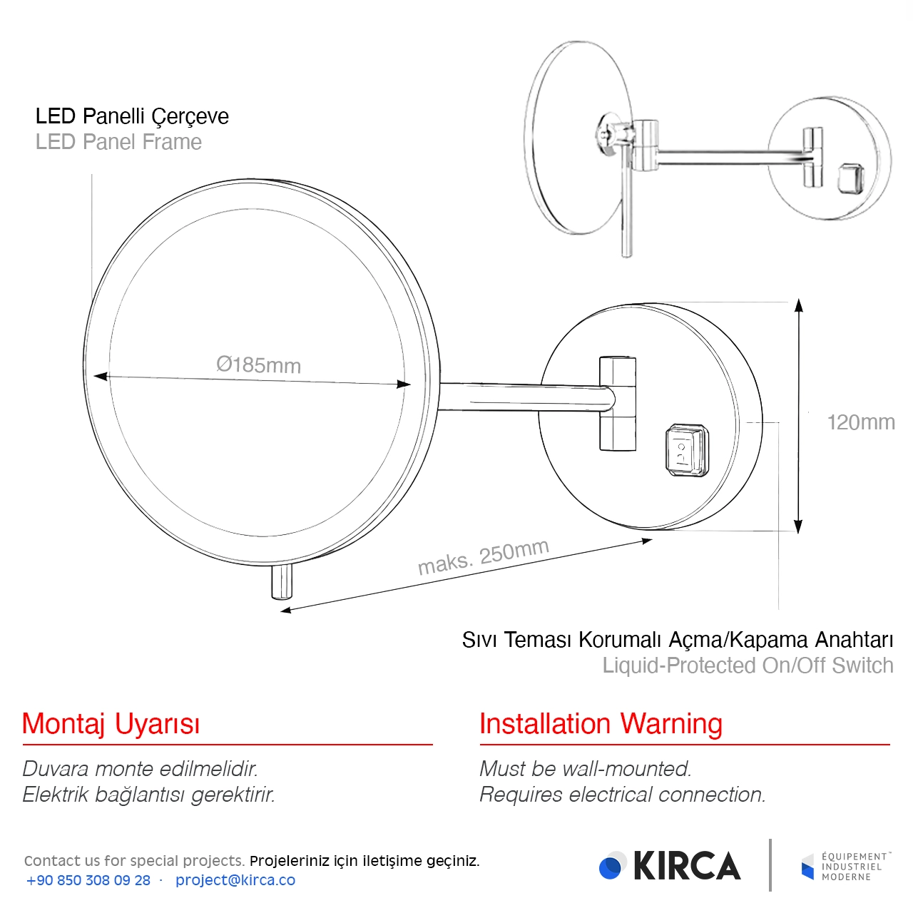 EIM Elegance MML1AC Tek Kollu Mafsallı Ledli Makyaj Aynası W6BEPTMMEE1C Single Articulated Arm Led Makeup Mirror @kircaco #islakhacim #makyajaynasi