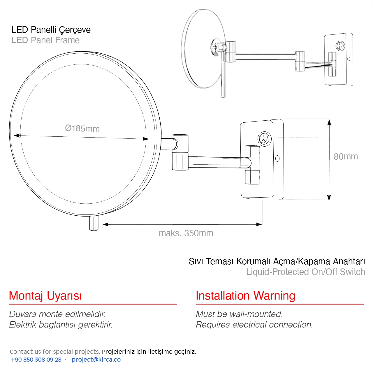 EIM Elegance MML2AC 3 Kollu Mafsallı Ledli Makyaj Aynası – Kare Rozetli elektrik bağlantısına ihtiyaç duyar. Dolayısıyla montaj noktasında elektrik çıkış ekletmeniz gerekmektir. Bununla birlikte banyo ve lavabo gibi genel kullanım alanlarında, yerden 150 ila 170cm yükseklikte konumlandırmanız önerilmektedir. Bunun dışında makyaj masanız çevresinde özel bir yükseklikte konumlandırabilirsiniz.