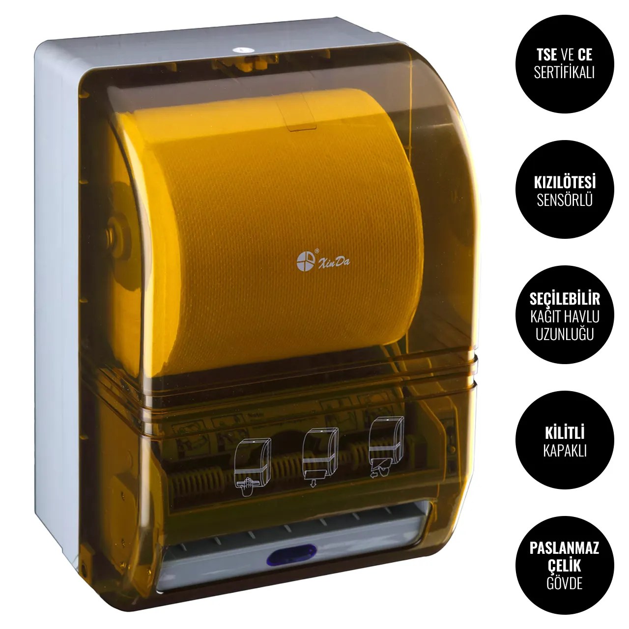 Xinda CZQ20 Fotoselli Kağıt Havlu Dispenseri TSE, CE ve IP22 sertifikalarına sahiptir. Dolayısıyla nemli özelikteki kapalı alanlarda güvenle kullanabilirsiniz.