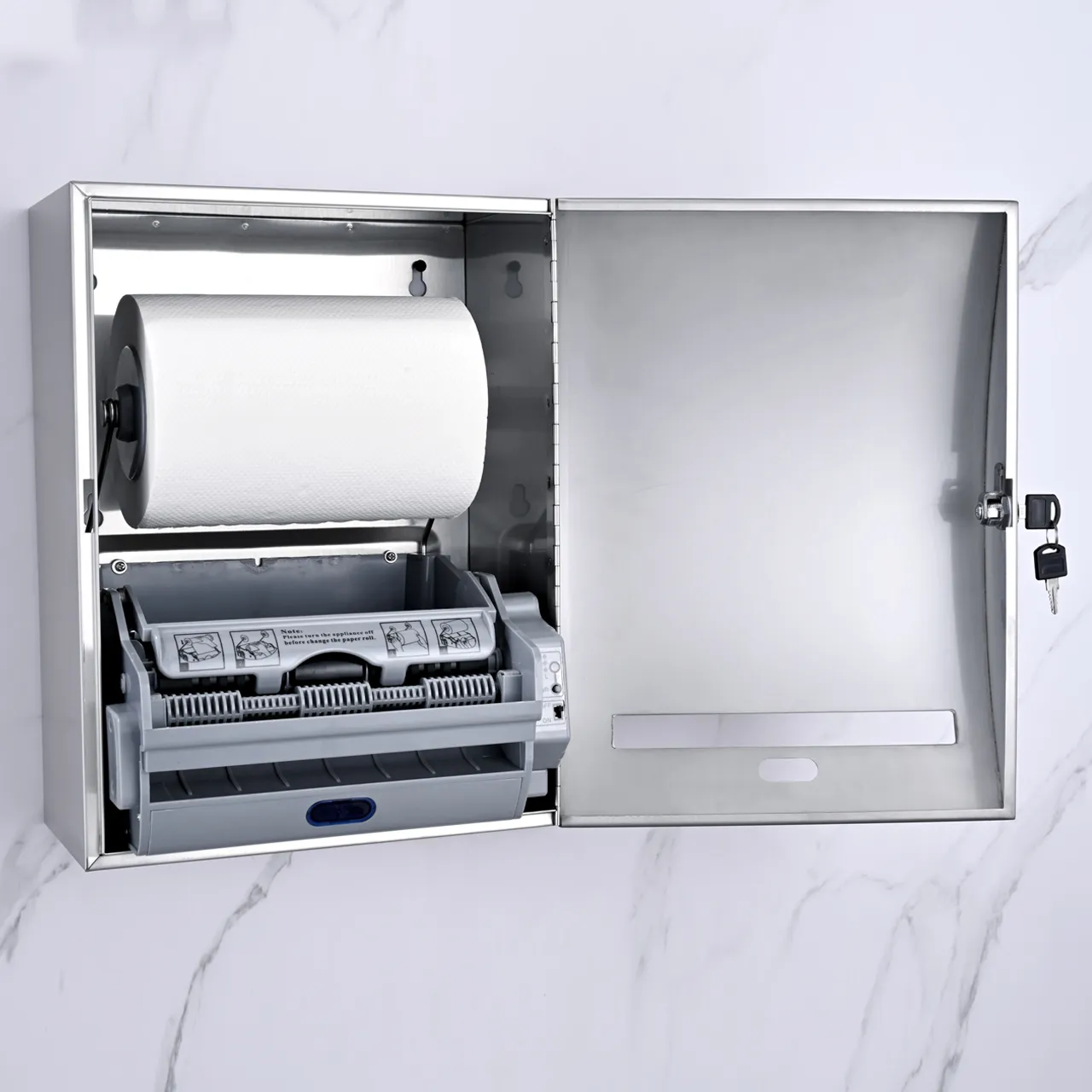 Xinda CZQ20KH Fotoselli Kağıt Havlu Dispenser yeni nesil ayarlanabilir havlu kağıt uzunluğu belirlemenize imkan sunarak kullanım maliyetlerinizi düşürür. Bununla birlikte sadece yetkili personelin anahtarla erişebileceğine emin olursunuz. Böylece hem ekonomi, hem de tam denetim sağlarsınız.