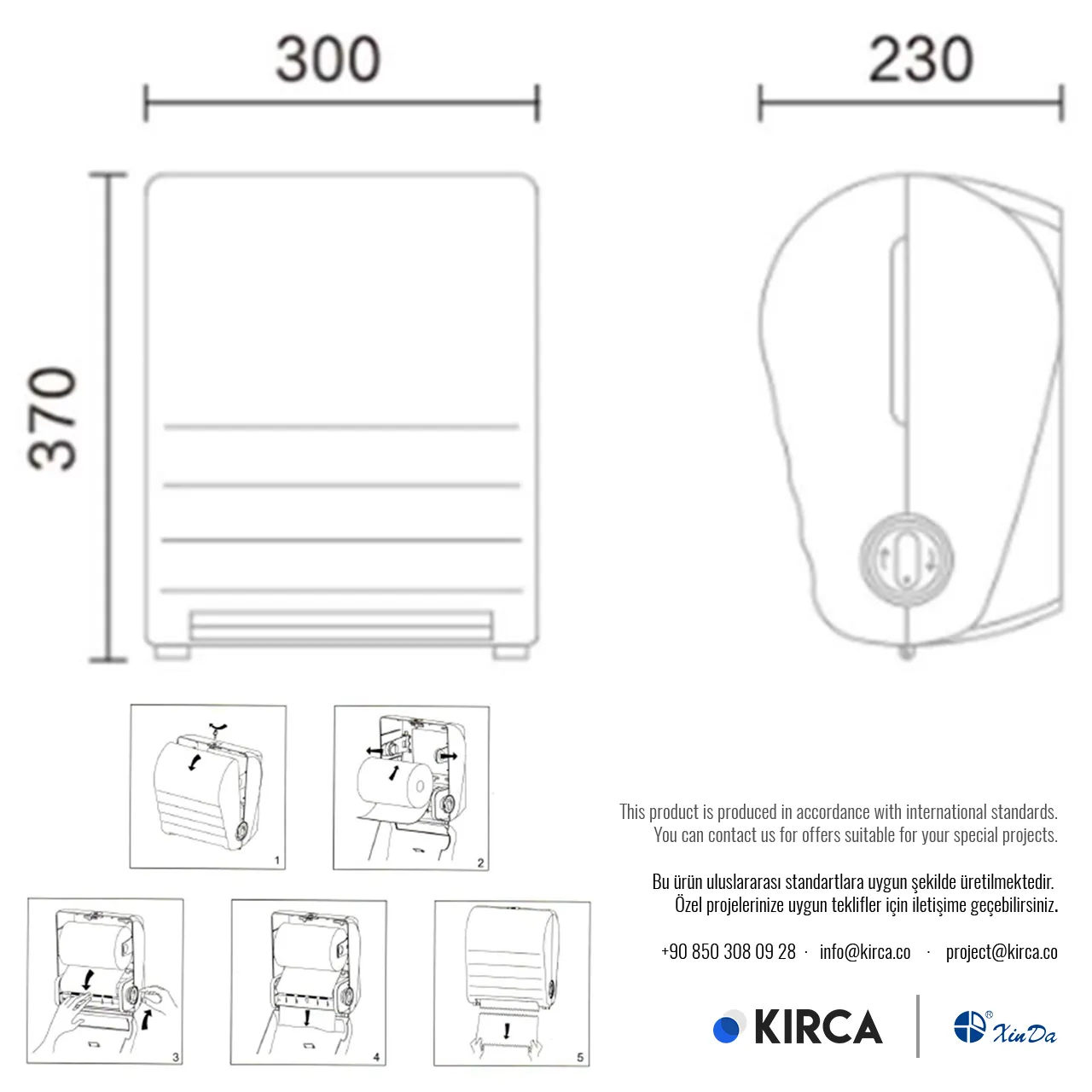 Xinda CZQ25 Otomatik Kesicili Manuel Kağıt Havlu Dispenseri yeni nesil otomatik havlu kağıt kesici özelliği ile ön plana çıkmaktadır. Manuel çalışır ve enerji tüketimini ortadan kaldırır. Yoğun sirkülasyonlu alanlarda temassız ve hijyenik kullanıma uygundur.